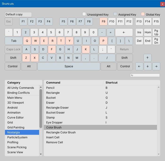 See the Unity Manual: Shortcut Manager for more information on the Shortcuts window.