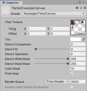 Tile shader for use in Canvas (UI) Be sure to use this shader when using Map for Canvas (UI). Note: When using this shader, the Animation Frame Rate in the Tile setting is ignored and fixed at 10fps.