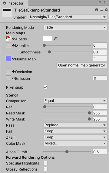 For more information on Standard shaders, see Unity Manual: Standard Shader.